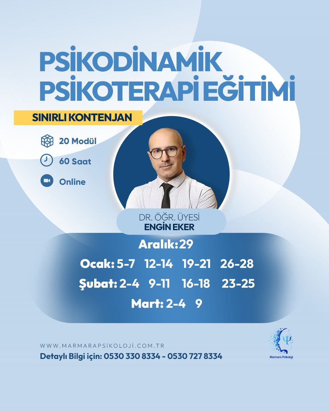 Psikodinamik Psikoterapi EğitimiDr. Öğr. Üyesi Engin EKERMarmara Psikoloji, farklı alanlarla ilgili verdiği uzman eğitimleri ile kapsamlı bir hizmet sunmaktadır.