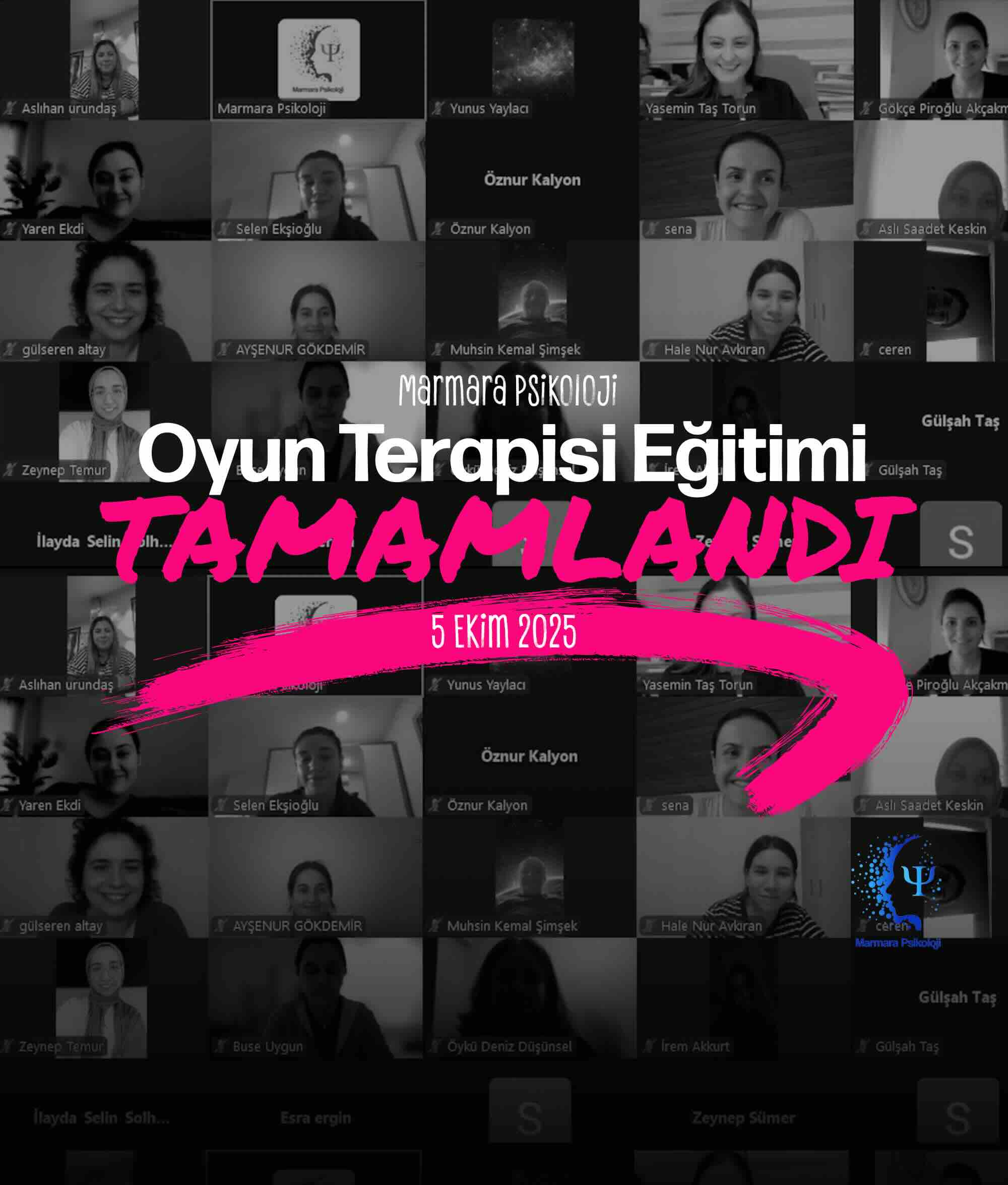 5. Grup Oyun Terapisi Eğitimi TamamlandıDoç. Dr. Yasemin TAŞ TORUNMarmara Psikoloji, Oyun Terapisi eğitimi tamamlandı.