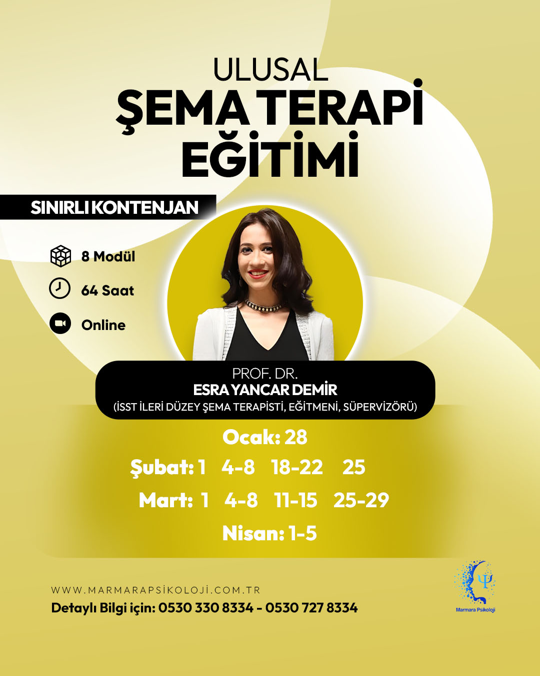 Şema Terapi EğitimiProf. Dr. Esra YANCAR DEMİRMarmara Psikoloji, farklı alanlarla ilgili verdiği uzman eğitimleri ile kapsamlı bir hizmet sunmaktadır.